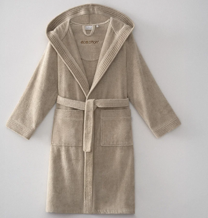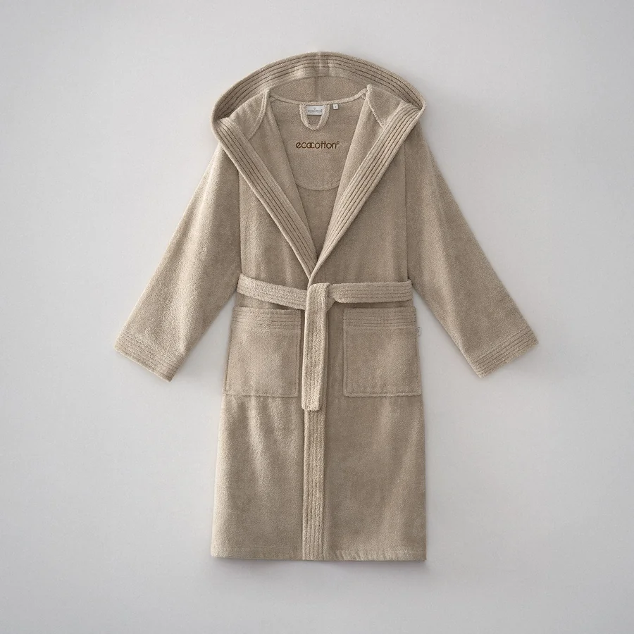 Doğal dokunuşu modern çizgilerle buluşturan Yeni Ecosoft kadın bornozu, banyonuza sade bir şıklık ve zarafet katmak için mükemmel bir seçimdir.