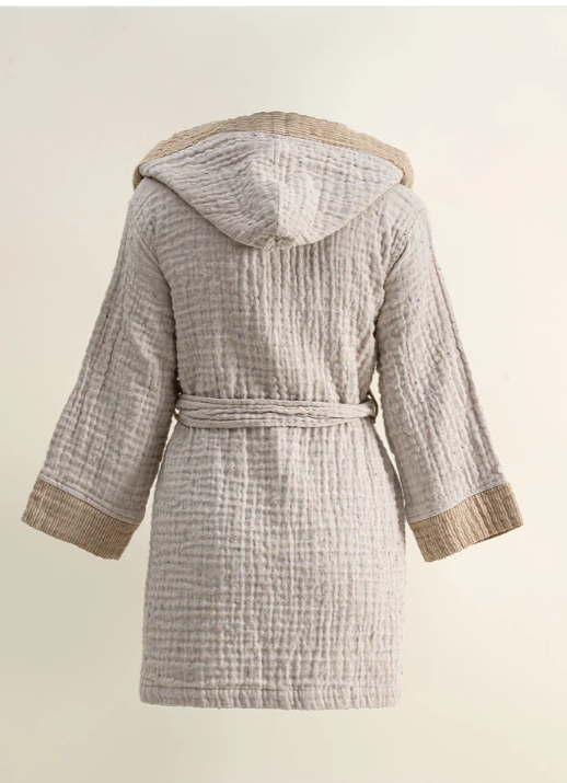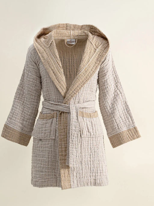 Melinda müslin dokuma bornoz koleksiyonu, miniklerin hassas ciltlerine yumuşacık bir dokunuş sunar. Doğal ve nefes alabilen yapısıyla rahat hareket etmelerini sağlar, alerjen içermez ve hassas ciltler için güvenli, yumuşacık bir koruma sunar.