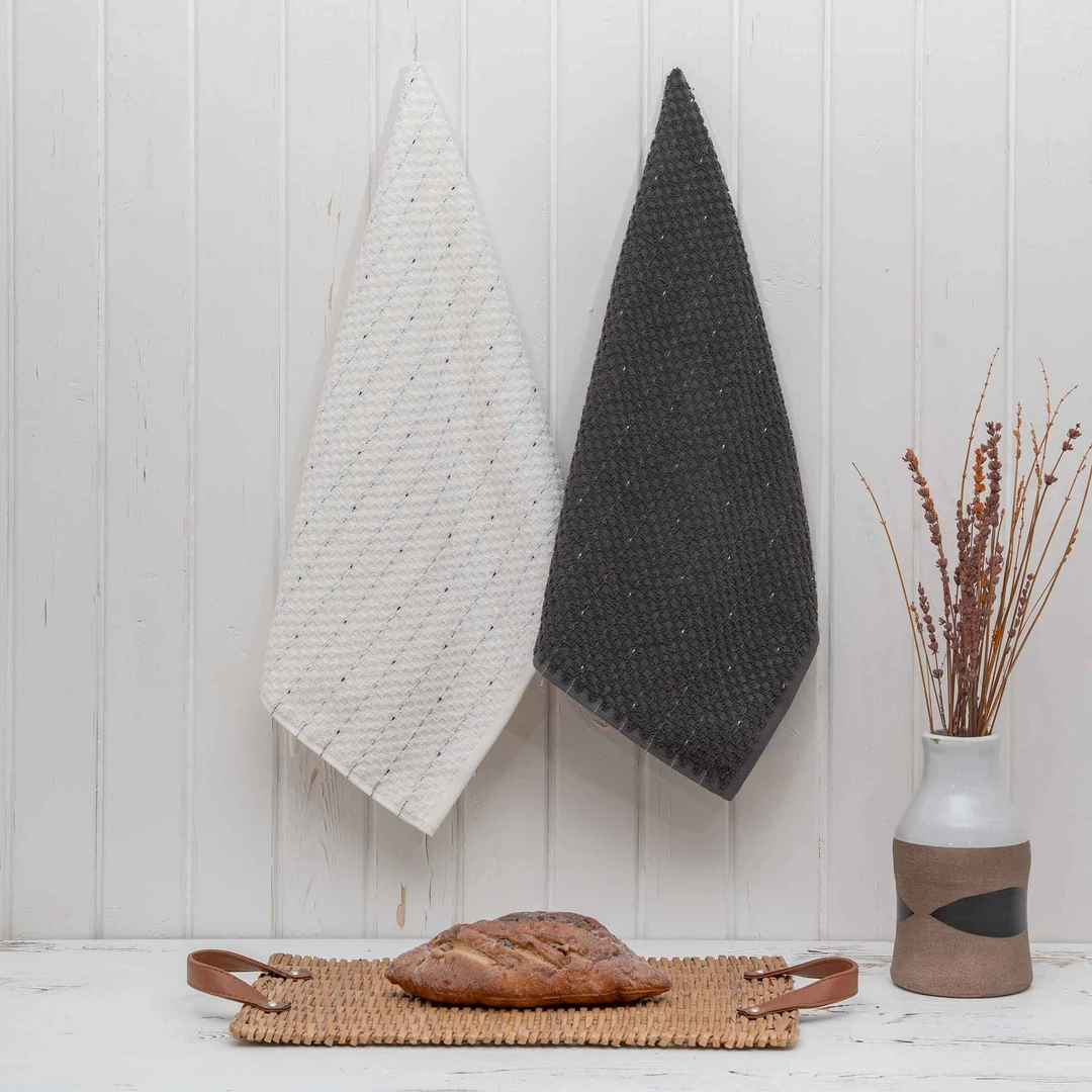 Parla 2'li havlu seti, yüksek kaliteli Ege pamuğundan özenle üretilmiştir ve olağanüstü emici özellikleri ile dayanıklılığı bir araya getirir. Böylece, bulaşıkları kurutmak, tezgahları silmek veya mutfakta herhangi bir sıvıyı temizlemek için mükemmel bir seçenek sunar.