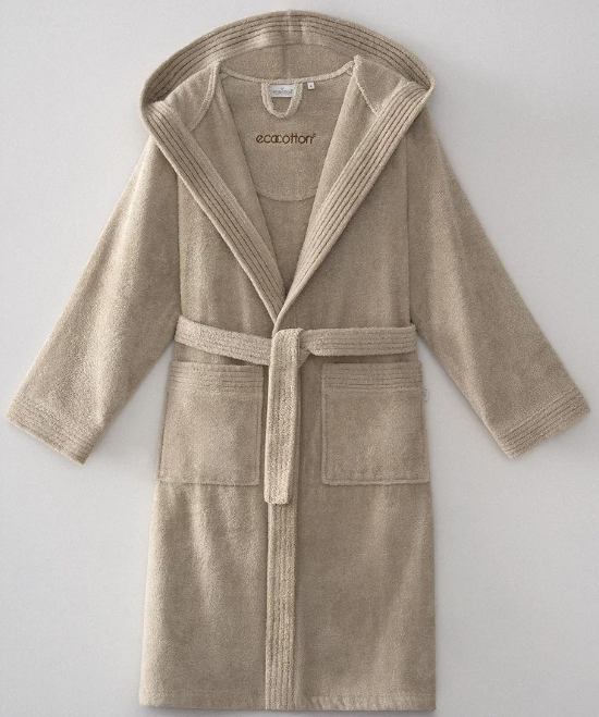 Doğal dokunuşu modern çizgilerle buluşturan Yeni Ecosoft kadın bornozu, banyonuza sade bir şıklık ve zarafet katmak için mükemmel bir seçimdir.