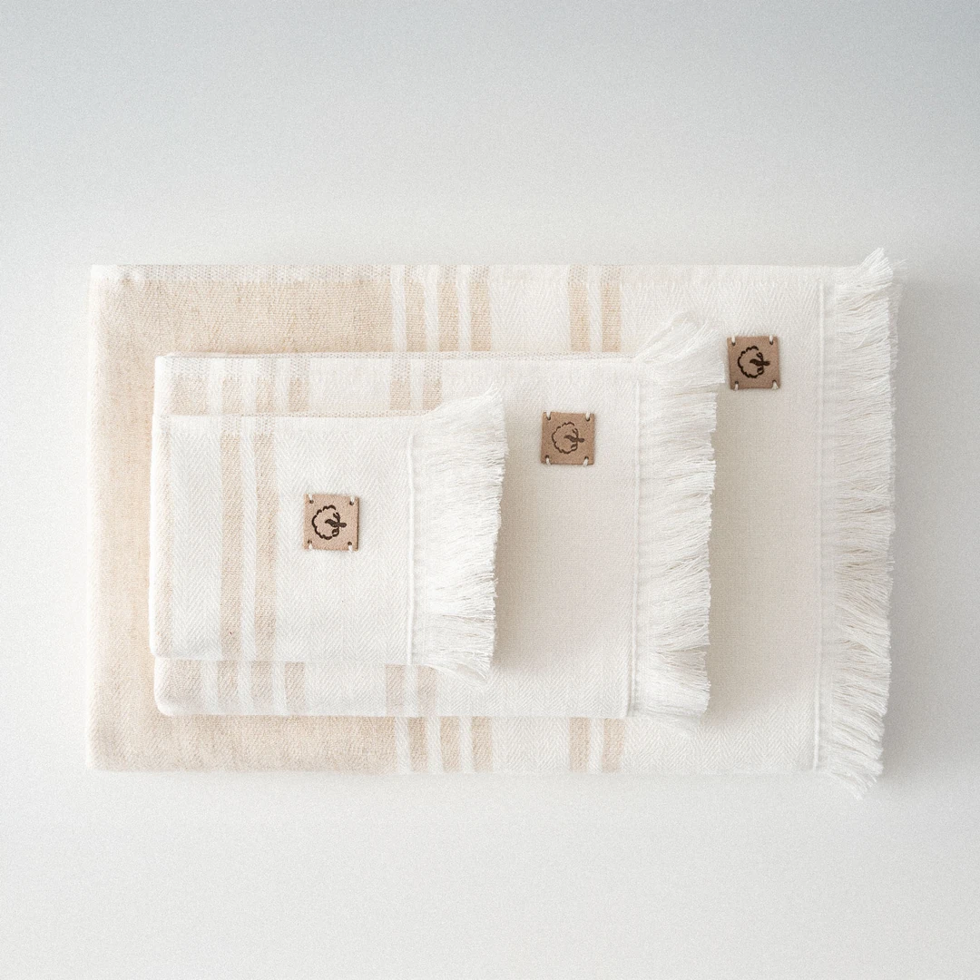 Erva organik pamuk keten melanj havlu seti, doğal ve sürdürülebilir malzemeleriyle üstün emicilik ve yumuşaklık sunarken, zarif melanj dokusu ile banyonuza şık bir dokunuş katar.