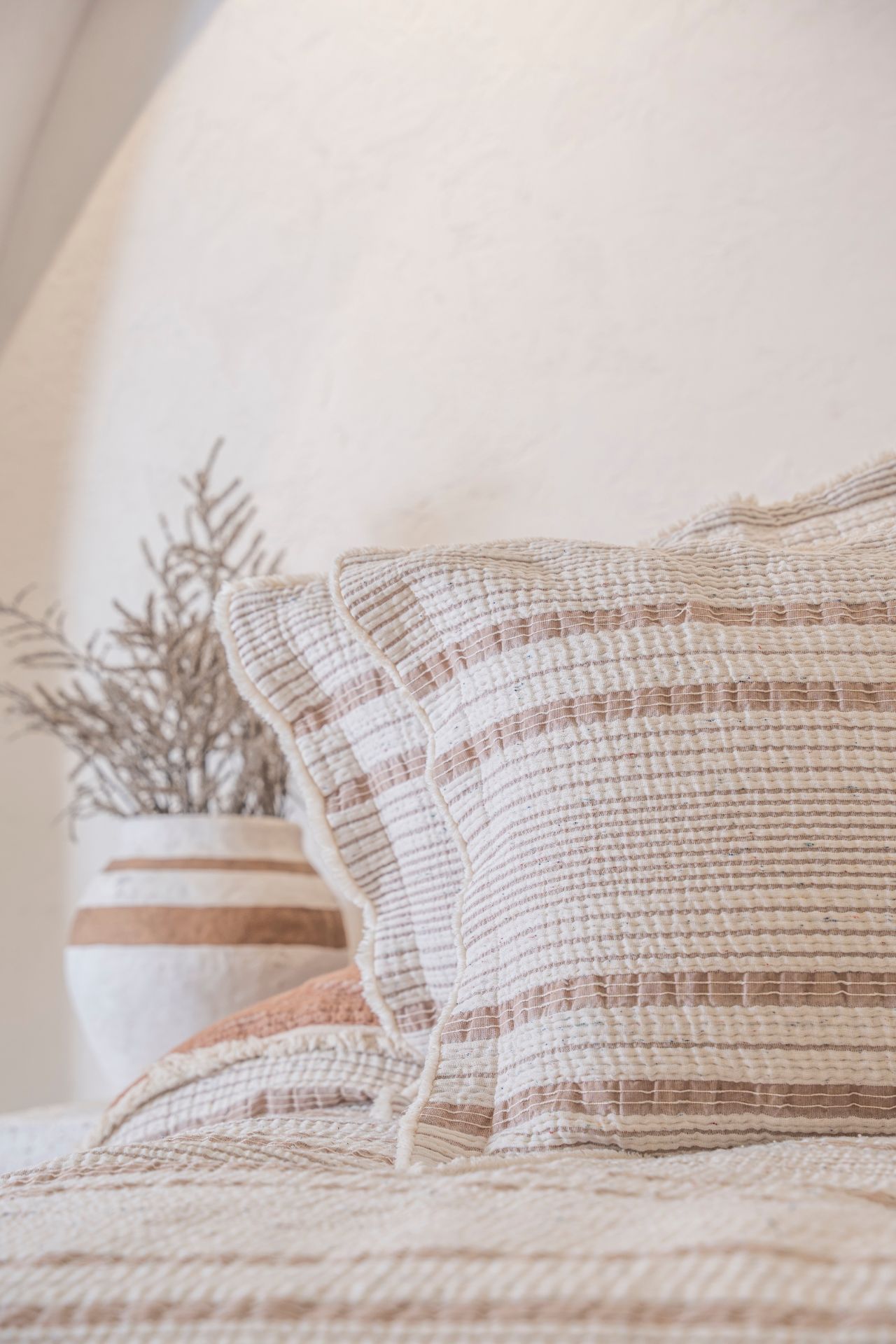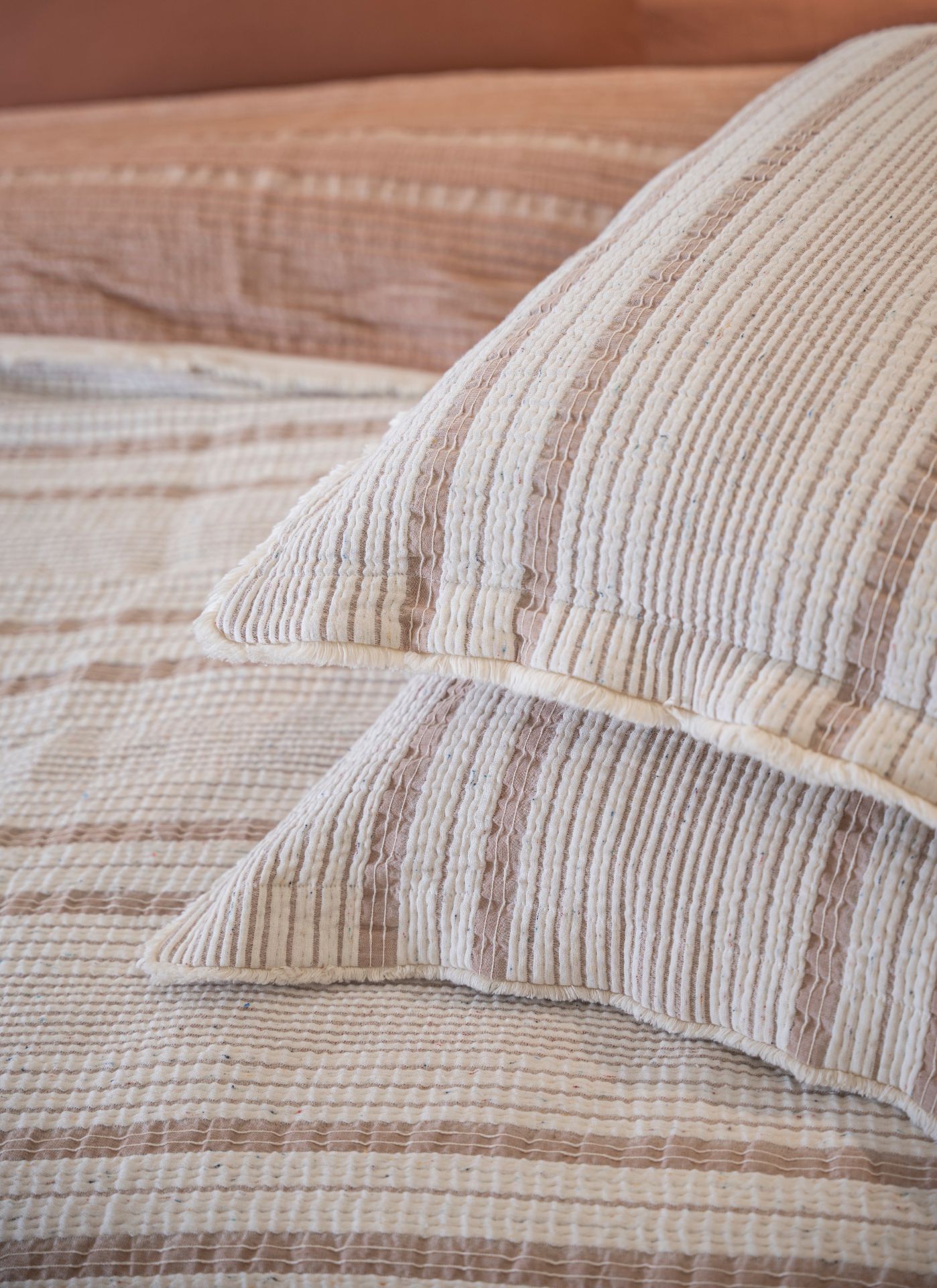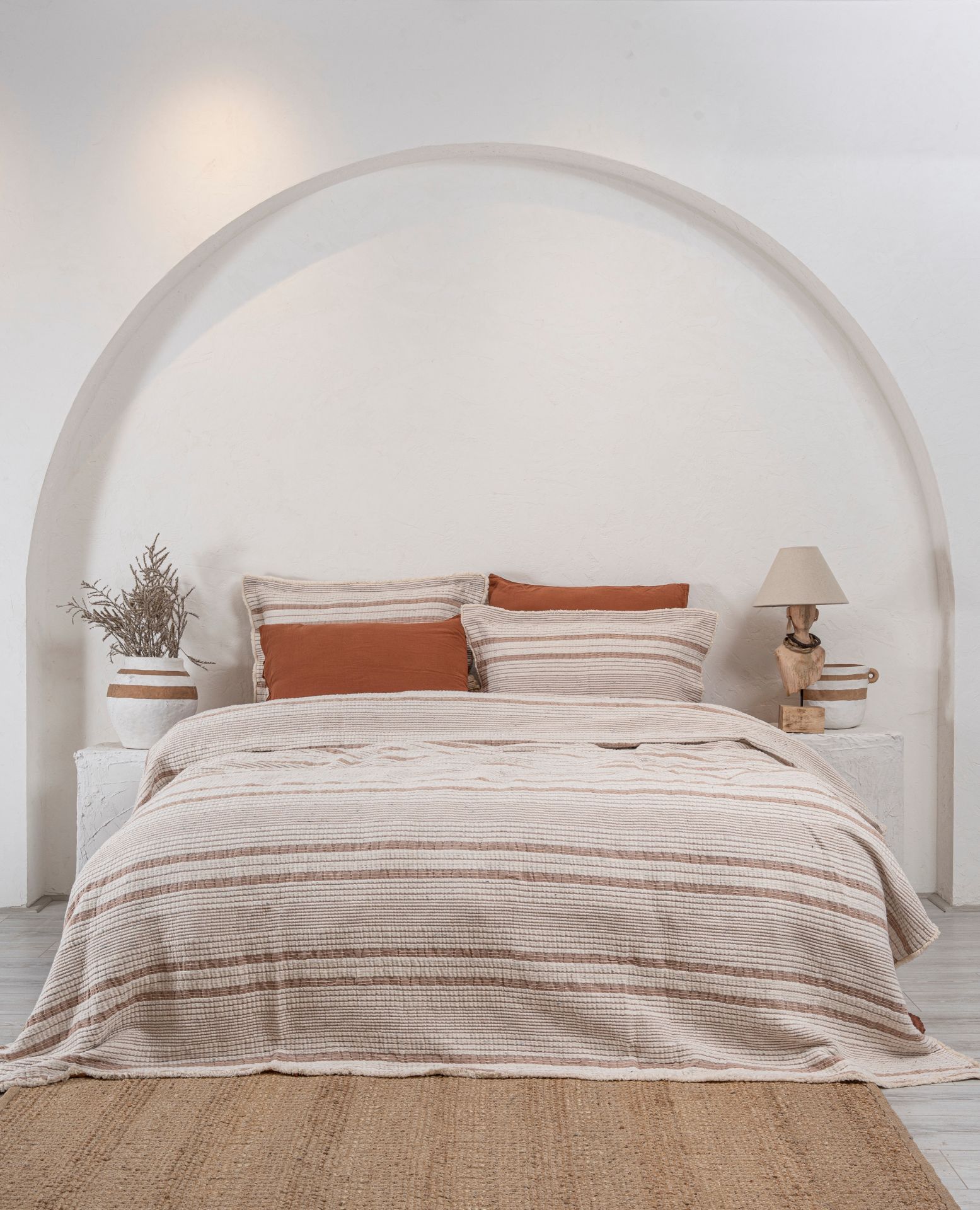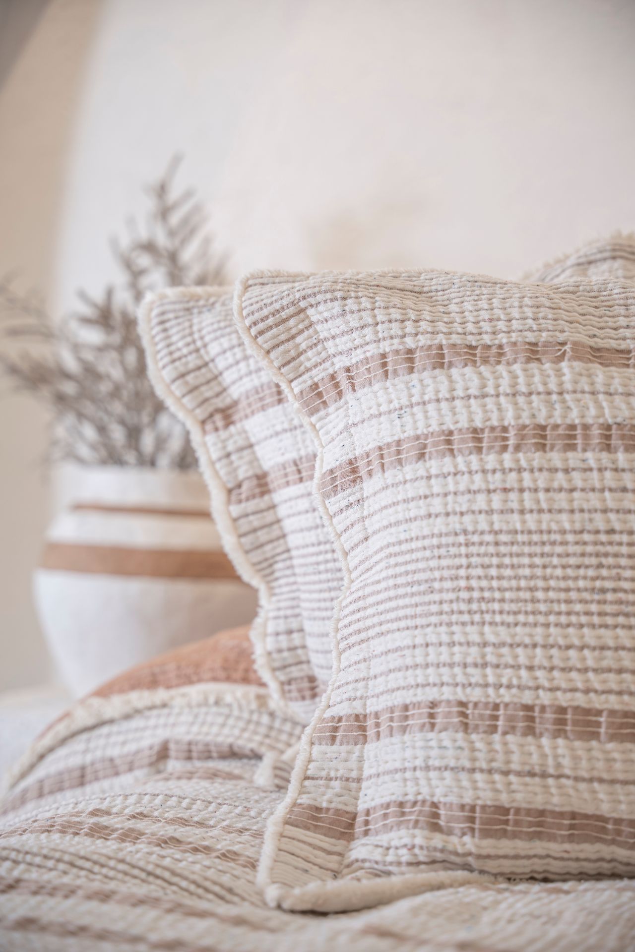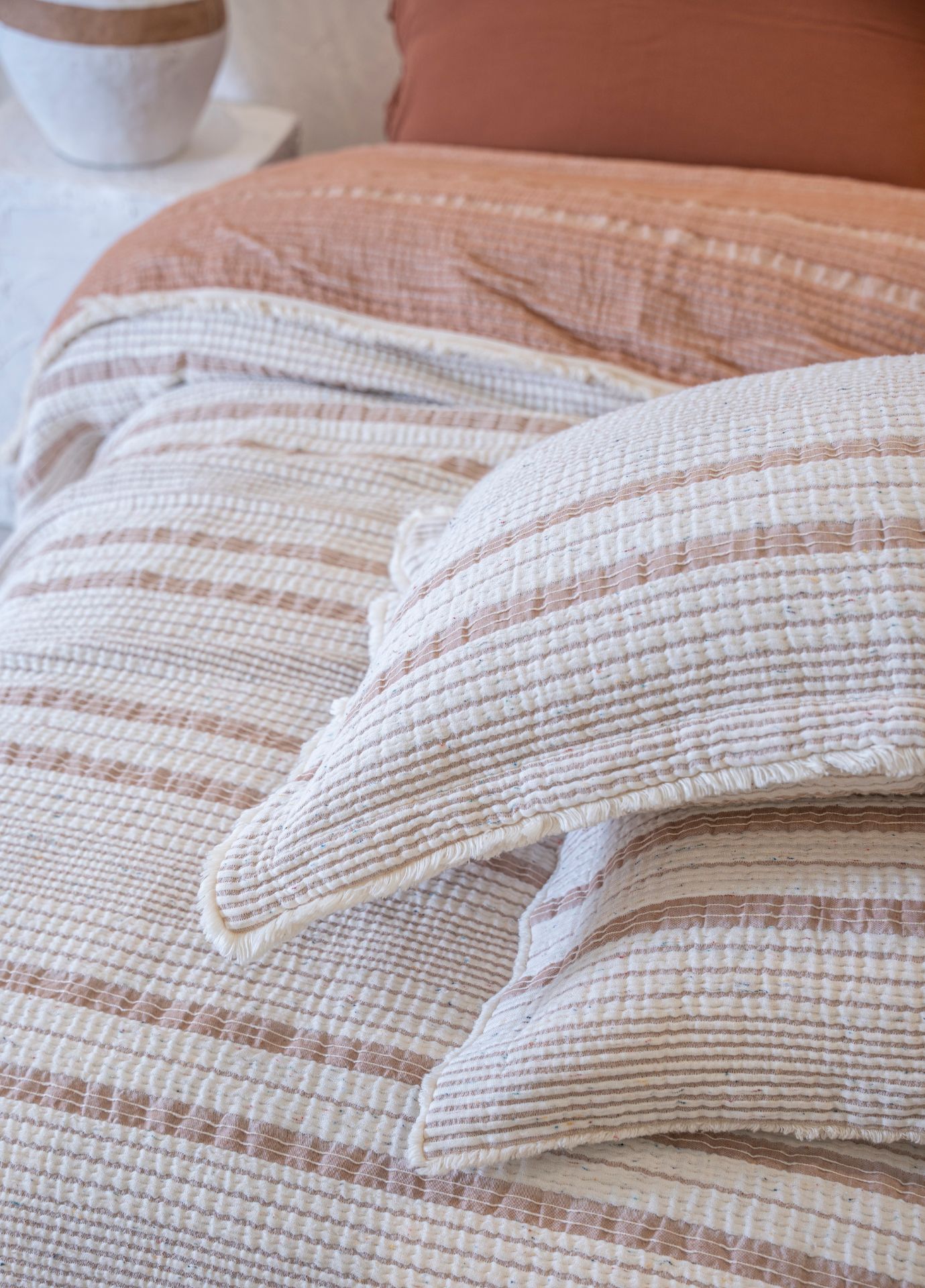 Hivda %100 Organik Pamuk Müslin Dolgulu Yatak Örtüsü Seti, doğal pamuk dolgusuyla yatak odanıza hafiflik ve lüks bir yumuşaklık getirir. Nefes alabilen müslin dokusu, her mevsimde konfor sağlarken, zarif dokusuyla sade bir şıklık sunar.