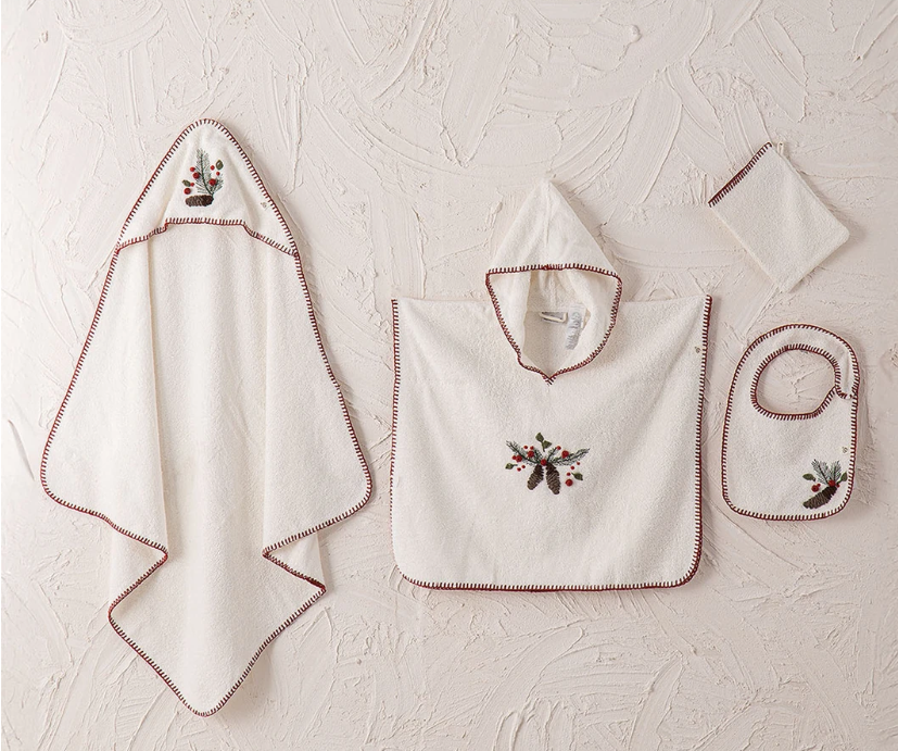 Laden bebek panço seti, bebeğinizin cildine nazikçe sarılan masalsı bir dokunuş sunar. Her detayı özenle işlenmiş bu set, minik kahramanınızın banyodan sonra rahatça kurulanıp huzurla dinlenmesini sağlar.