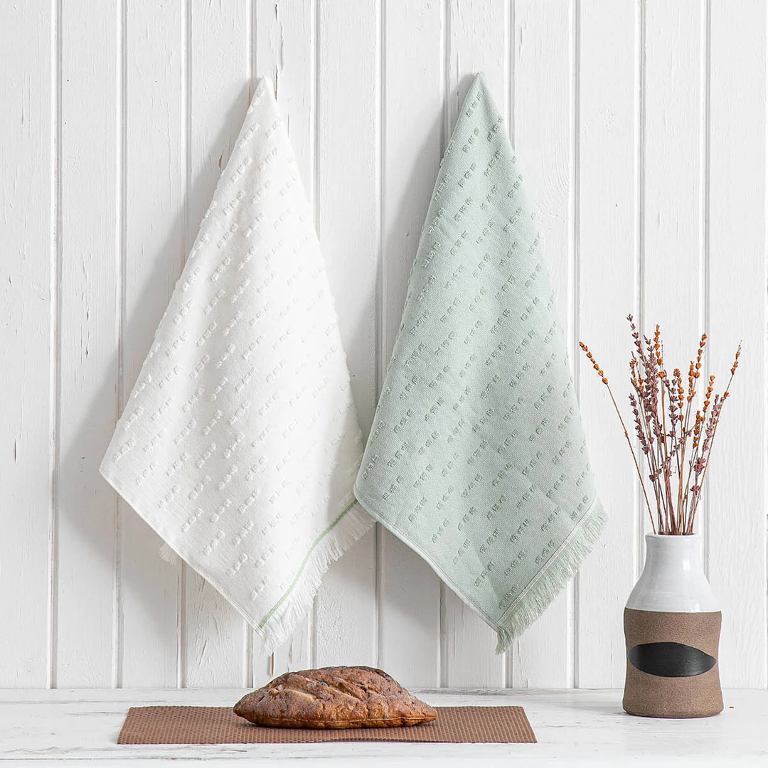 Pera havlu seti, yüksek kaliteli Ege pamuğundan özenle üretilmiştir ve olağanüstü emici özellikleri ile dayanıklılığı bir araya getirir. Böylece, bulaşıkları kurutmak, tezgahları silmek veya mutfakta herhangi bir sıvıyı temizlemek için mükemmel bir seçenek sunar.