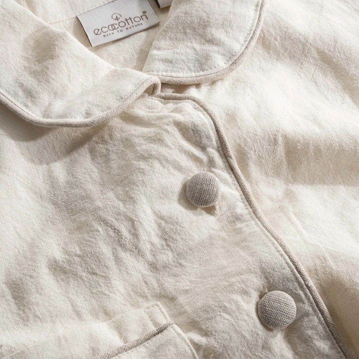 Hafif ve nefes alabilen keten dokusuyla Reya Pijama Takımı, rahat bir uyku deneyimi ve şık bir ev stilinin vazgeçilmezi olacak. Hem yatarken hem de evde dinlenirken sunduğu doğal dokunuş, cildinizin gün boyu nefes almasını sağlar.